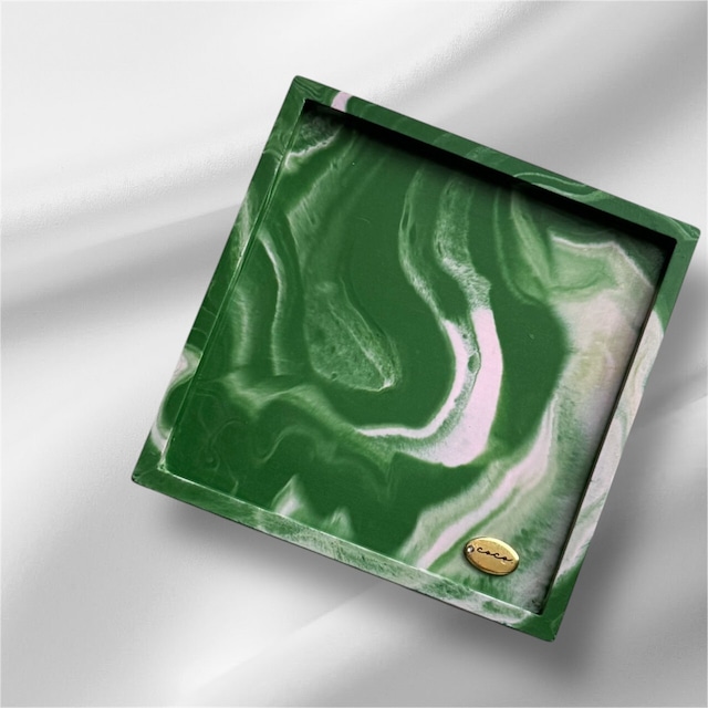 【 SALE |10%OFF 】 「 スクエアフォルムが映える、coco.タグ付きトレイ 」 スクエアデザインに、 coco.のロゴタグを添えたスクエアトレイ。 ジェスモナイト特有のなめらかな質感と、 奥行きを感じるマーブル模様が、 空間に落ち着きと洗練された印象をプラスします。 アクセサリーやリング、鍵などの小物置きとしてはもちろん、 デスクや棚の上に置くだけで、 インテリアのアクセントとしてもお楽しみいただけます。 シンプルながらも存在感があり、 韓国インテリアやモダン、ミニマルな空間にぴったりです。 ………………………………………… □ 素材 ジェスモナイト ※ 表明はコーティング加工を施しており ツヤのある仕上がりです □ 重さ 約 115g □ サイズ 約 10 × 10cm ………………………………………… □ ジェスモナイトとは ジェスモナイトとは樹脂でありながら、従来の一般的な油性樹脂とは質感が異なり、 プラスチック特有のテカリ感がほとんどなく、石のような落ち着いた風合いをもつ素材です。 ※すべてハンドメイドの為、イッテンモノです。 ………………………………………… □ お取り扱いについて ・ 当店で取り扱うジェスモナイトは耐水性がないものですが 一時的に水がかかる分には問題ありません 濡れた場合や汚れた際にはタオルで拭いてください ( 長時間水につけておくと変色の可能性があります ) ・長時間水につけることや食品にはお使いいただけません 何か食べ物を置く場合はペーパー等を敷き 直接触れないようにしてお使いください ・非常に丈夫な素材ではありますが扱い方によっては 割れてしまうこともあります ・ジェスモナイトの性質上気泡が入り 欠けているようにみえるところもありますが 気泡もデザインの一部としてご理解いただけますと幸いです ………………………………………… □ 発送について 発送期間は5日以内を予定しております ………………………………………… □ 注意事項 ご購入前に「 ABOUT 」をお読みください https://coco0.official.ec/about お使いのモニター環境によって、実際の色と画面上の色が異なる場合がございますので ご了承ください ※既製品のような強度はございません。商品の取り扱いには十分ご注意ください ………………………………………… その他質問等がございましたら お気軽にお問合せください ………………………………………… ジェスモナイト ハンドメイド 小物プレート アクセサリートレイ カラフル 雑貨 ギフト ミニマルデザイン 撮影小物 ディスプレイ インテリア雑貨