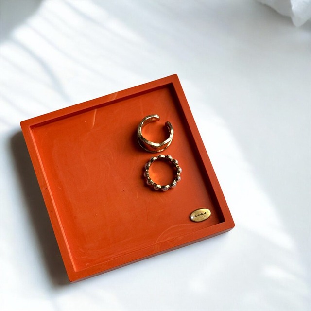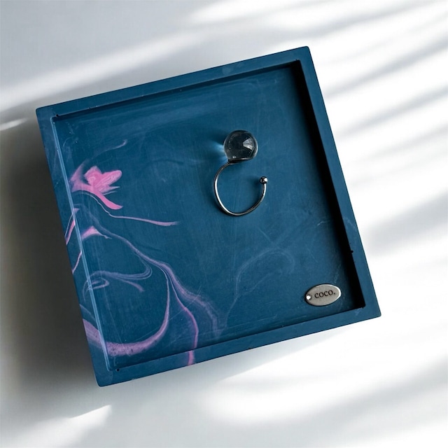 【 SALE |10%OFF 】 「 スクエアフォルムが映える、coco.タグ付きトレイ 」 スクエアデザインに、 coco.のロゴタグを添えたスクエアトレイ。 ジェスモナイト特有のなめらかな質感と、 奥行きを感じるマーブル模様が、 空間に落ち着きと洗練された印象をプラスします。 アクセサリーやリング、鍵などの小物置きとしてはもちろん、 デスクや棚の上に置くだけで、 インテリアのアクセントとしてもお楽しみいただけます。 シンプルながらも存在感があり、 韓国インテリアやモダン、ミニマルな空間にぴったりです。 ………………………………………… □ 素材 ジェスモナイト ※ 表明はコーティング加工を施しており ツヤのある仕上がりです □ 重さ 約 111g □ サイズ 約 10 × 10cm ………………………………………… □ ジェスモナイトとは ジェスモナイトとは樹脂でありながら、従来の一般的な油性樹脂とは質感が異なり、 プラスチック特有のテカリ感がほとんどなく、石のような落ち着いた風合いをもつ素材です。 ※すべてハンドメイドの為、イッテンモノです。 ………………………………………… □ お取り扱いについて ・ 当店で取り扱うジェスモナイトは耐水性がないものですが 一時的に水がかかる分には問題ありません 濡れた場合や汚れた際にはタオルで拭いてください ( 長時間水につけておくと変色の可能性があります ) ・長時間水につけることや食品にはお使いいただけません 何か食べ物を置く場合はペーパー等を敷き 直接触れないようにしてお使いください ・非常に丈夫な素材ではありますが扱い方によっては 割れてしまうこともあります ・ジェスモナイトの性質上気泡が入り 欠けているようにみえるところもありますが 気泡もデザインの一部としてご理解いただけますと幸いです ………………………………………… □ 発送について 発送期間は5日以内を予定しております ………………………………………… □ 注意事項 ご購入前に「 ABOUT 」をお読みください https://coco0.official.ec/about お使いのモニター環境によって、実際の色と画面上の色が異なる場合がございますので ご了承ください ※既製品のような強度はございません。商品の取り扱いには十分ご注意ください ………………………………………… その他質問等がございましたら お気軽にお問合せください ………………………………………… ジェスモナイト ハンドメイド 小物プレート アクセサリートレイ カラフル 雑貨 ギフト ミニマルデザイン 撮影小物 ディスプレイ インテリア雑貨