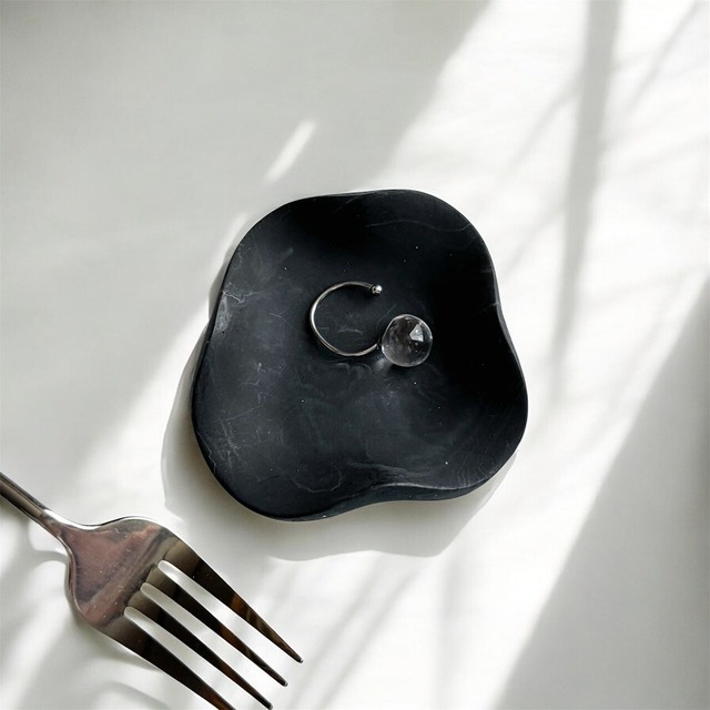 【 SALE |10%OFF 】 「 手のひらサイズのトレイ 」 ジェスモナイトで制作した手のひらサイズのトレイ やわらかな曲線が印象的で 表面はコーティング済のためつるっとした仕上がりになっております アクセサリーや鍵などの小物置きとしてはもちろん インテリアのワンポイントとしてもお楽しみいただけます ………………………………………… □ 素材 ジェスモナイト ※ 表明はコーティング加工を施しており ツヤのある仕上がりです □ 重さ 約 54g □ サイズ 約 7 × 7.5cm ………………………………………… □ ジェスモナイトとは ジェスモナイトとは樹脂でありながら、従来の一般的な油性樹脂とは質感が異なり、 プラスチック特有のテカリ感がほとんどなく、石のような落ち着いた風合いをもつ素材です。 ※すべてハンドメイドの為、イッテンモノです。 ………………………………………… □ お取り扱いについて ・ 当店で取り扱うジェスモナイトは耐水性がないものですが 一時的に水がかかる分には問題ありません 濡れた場合や汚れた際にはタオルで拭いてください ( 長時間水につけておくと変色の可能性があります ) ・長時間水につけることや食品にはお使いいただけません 何か食べ物を置く場合はペーパー等を敷き 直接触れないようにしてお使いください ・非常に丈夫な素材ではありますが扱い方によっては 割れてしまうこともあります ・ジェスモナイトの性質上気泡が入り 欠けているようにみえるところもありますが 気泡もデザインの一部としてご理解いただけますと幸いです ………………………………………… □ 発送について 発送期間は5日以内を予定しております ………………………………………… □ 注意事項 ご購入前に「 ABOUT 」をお読みください https://coco0.official.ec/about お使いのモニター環境によって、実際の色と画面上の色が異なる場合がございますので ご了承ください ※既製品のような強度はございません。商品の取り扱いには十分ご注意ください ………………………………………… その他質問等がございましたら お気軽にお問合せください ………………………………………… ジェスモナイト ハンドメイド 小物プレート アクセサリートレイ カラフル 雑貨 ギフト ミニマルデザイン 撮影小物 ディスプレイ インテリア雑貨