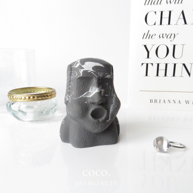 [ object ] 商品名 : CHU moai サイズ : 約7 × 5.5cm おもさ : 200g カラー : グレーペイント 素材 : ジェスモナイト ー---- [ 商品説明 ] ちゅーの口をしたモアイのオブジェは、 ユニークで愛らしいデザインが特徴のモアイオブジェです。 このモアイは、どんなインテリアにも個性をプラス◎ モアイの持つ威厳とちゅー顔の柔らかさが絶妙にミックスされ、見る人を和ませます。 プレゼントにもおすすめ◎ ー---- ※ 他のカラーはこちらからお願い致します。 ・ ーーーーー [ ジェスモナイトについて ] - 人と環境に優しい素材で作る世界に一つのインテリア - ジェスモナイトとは樹脂でありながら、従来の一般的な油性樹脂とは質感が異なり、 プラスチック特有のテカリ感がほとんどなく、石のような落ち着いた風合いをもつ素材です。 ※すべてハンドメイドの為、イッテンモノです。 ー---- [ お取り扱いについて ] ・ 当店で取り扱うジェスモナイトは耐水性がないものですが 一時的に水がかかる分には問題ありません。 濡れた場合や汚れた際にはタオルで拭いてください。 (長時間水につけておくと変色の可能性があります。) ・長時間水につけることや食品にはお使いいただけません。 何か食べ物を置く場合はペーパー等を敷き 直接触れないようにしてお使いください。 ・非常に丈夫な素材ではありますが扱い方によっては 割れてしまうこともあります。 ・ジェスモナイトの性質上、気泡が入り 欠けているようにみえるところもありますが 気泡もデザインの一部としてご理解いただけますと幸いです ー---- [ 発送について ] 発送期間は5日以内を予定しております。 ー---- [ 注意事項 ] ご購入前に「 ABOUT 」をお読みください。 https://coco0.official.ec/about お使いのモニター環境によって、実際の色と画面上の色が異なる場合がございますので、 ご了承ください。 ※既製品のような強度はございません。商品の取り扱いには十分ご注意ください。 ー---- その他質問等がございましたら、 お気軽にお問合せください。 ー---- 春 夏 秋 冬 ジェスモナイト インテリア カジュアル シンプル 個性的 銀箔 金箔 トレイ ママ 大人 モアイ もあい お花見 母の日 旅行 ギフト