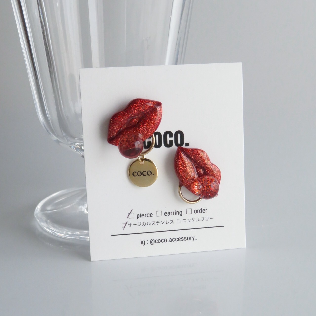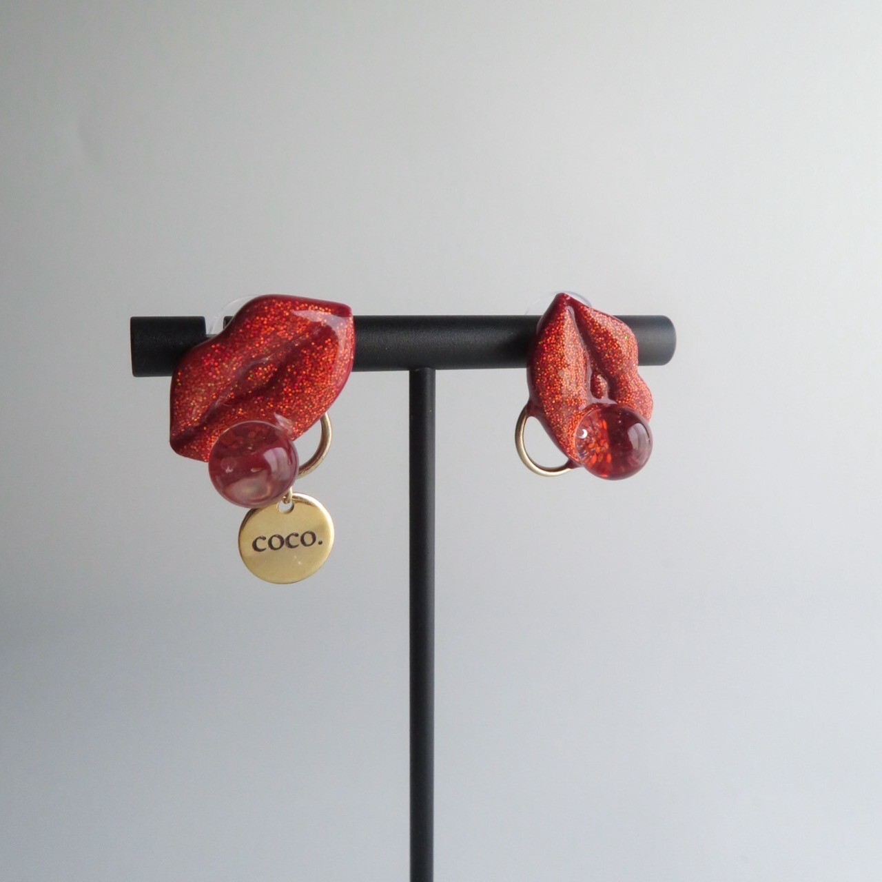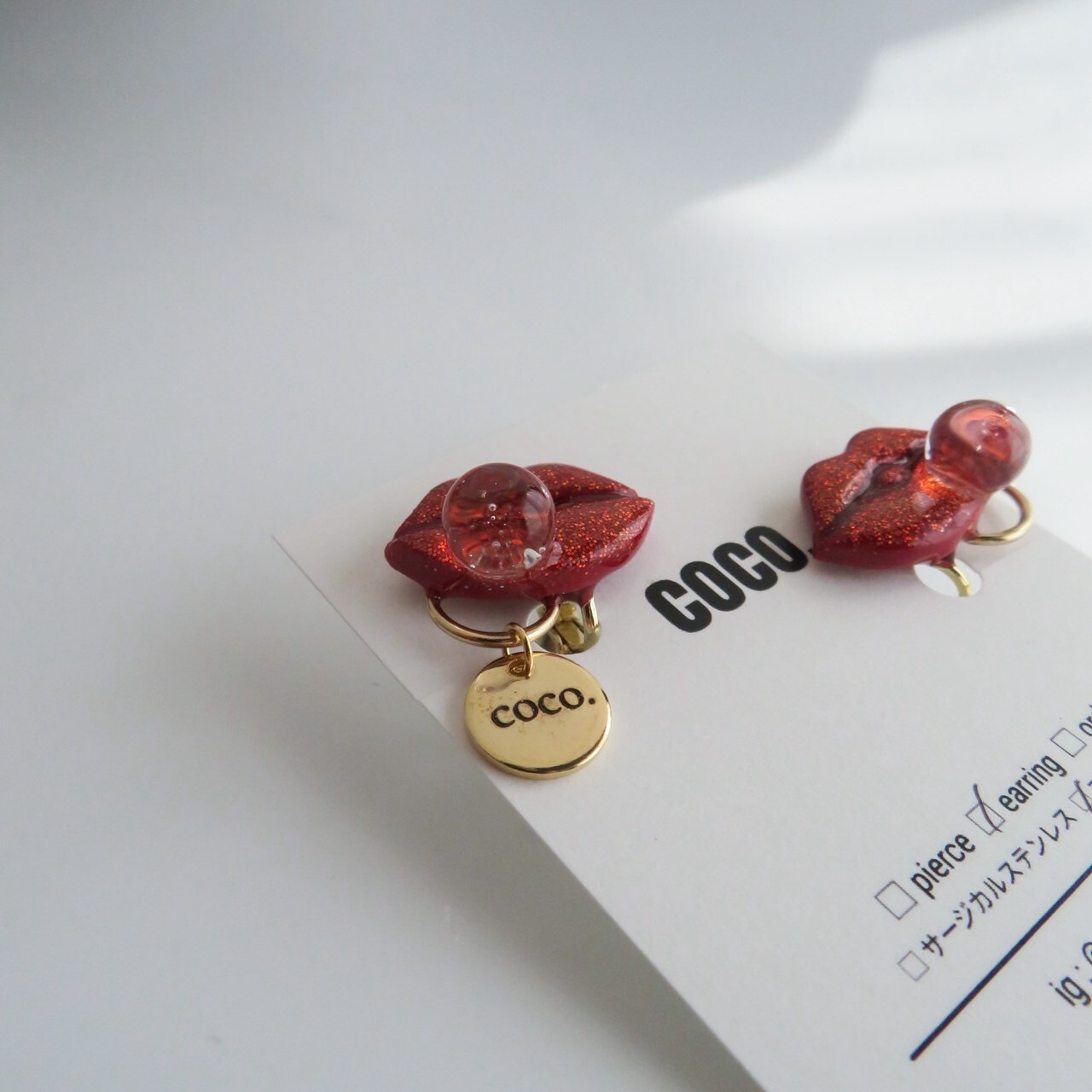 モノトーンコーデ リップモチーフ 大人可愛い 個性的 個性的デザイン ポリマークレイ モードファッション ユニーク