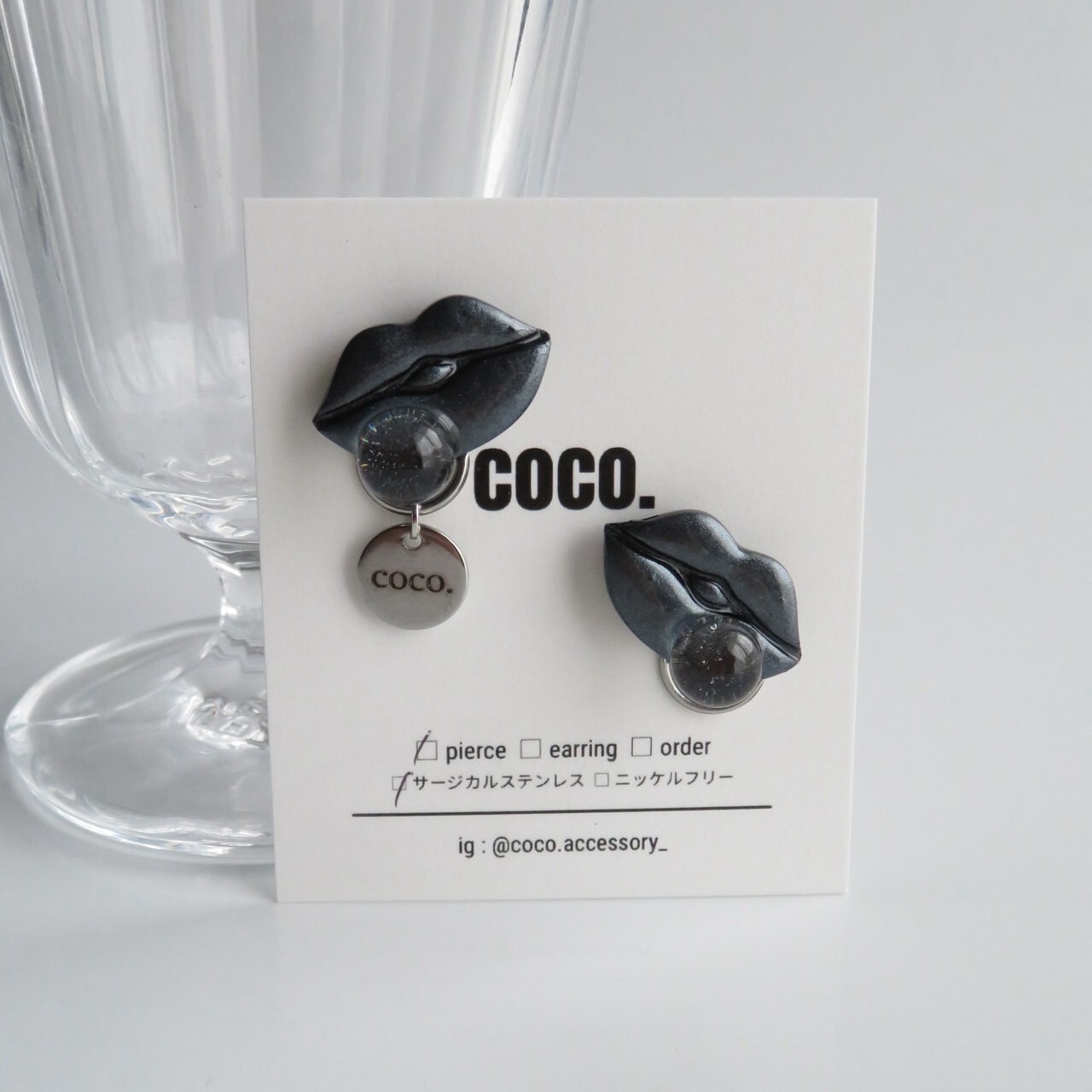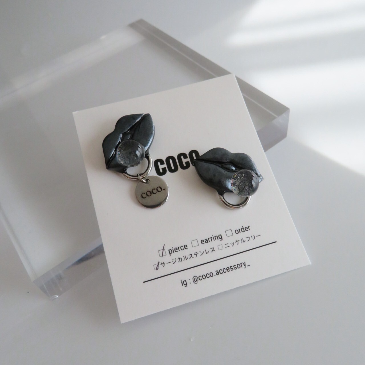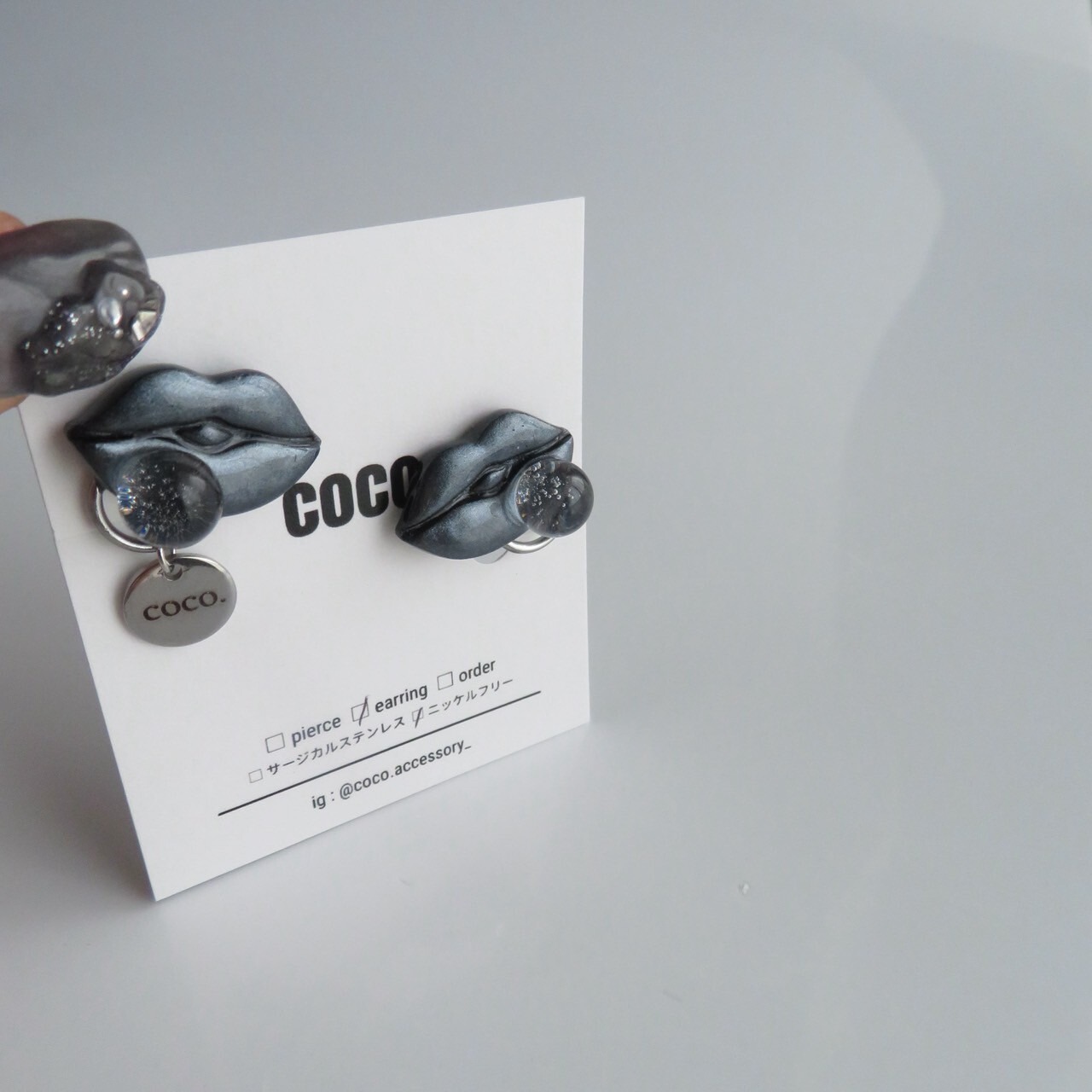 モノトーンコーデ リップモチーフ 大人可愛い 個性的 個性的デザイン ポリマークレイ モードファッション ユニーク