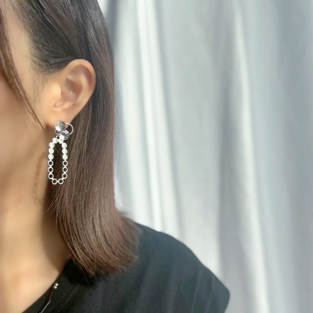 しなやかに揺れるシルバーパーツが甘さとモード感を絶妙に両立