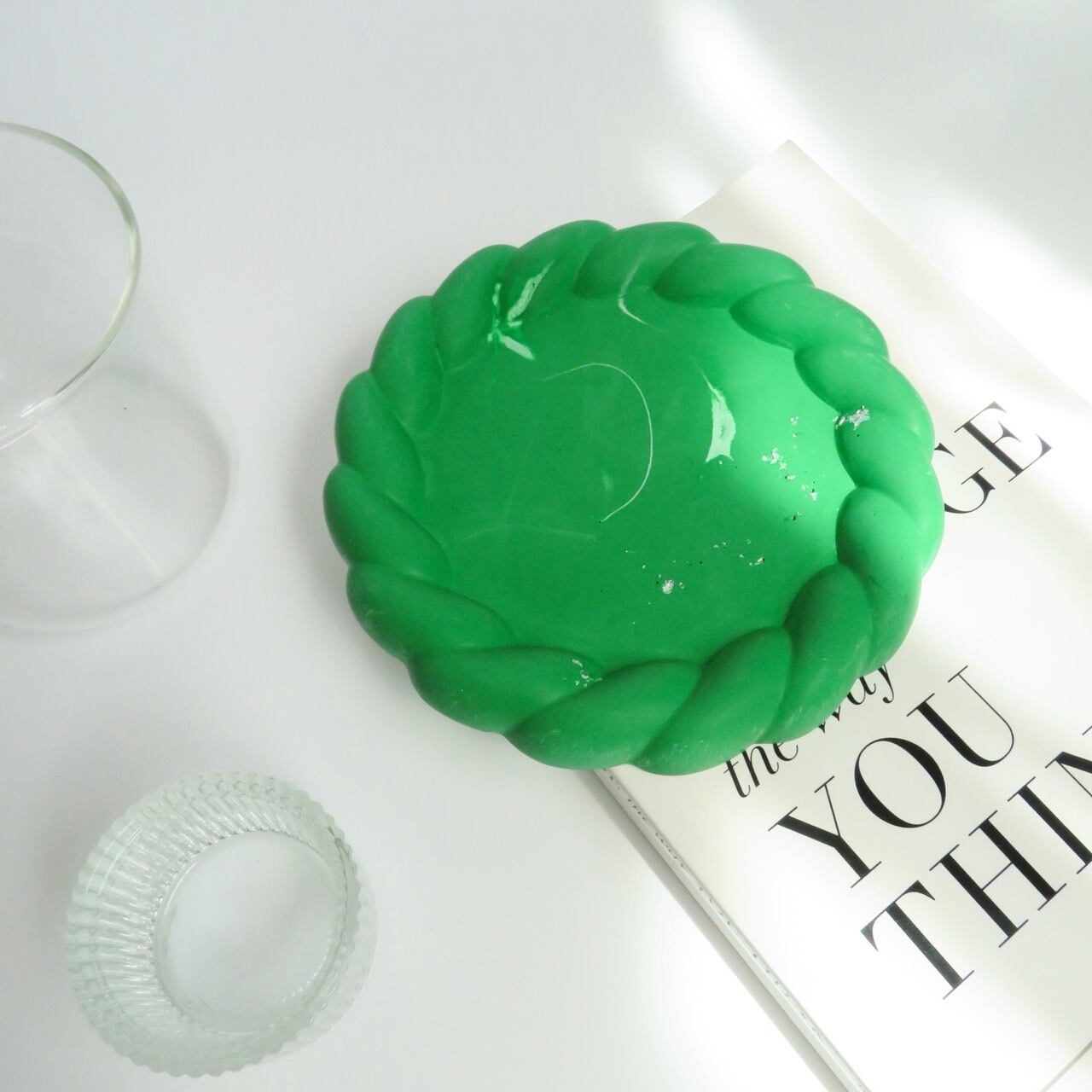 柔らかなツイスト模様とシルバー箔の輝きが特徴的なトレイ。