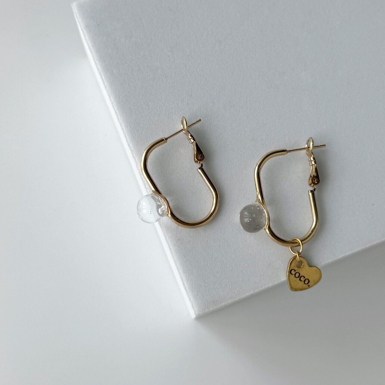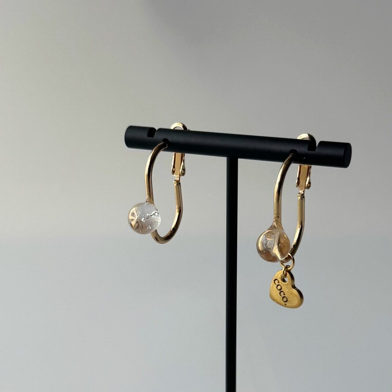 ピアス イヤリング アクセサリー ジュエリー アシンメトリー フープ クリア バブル