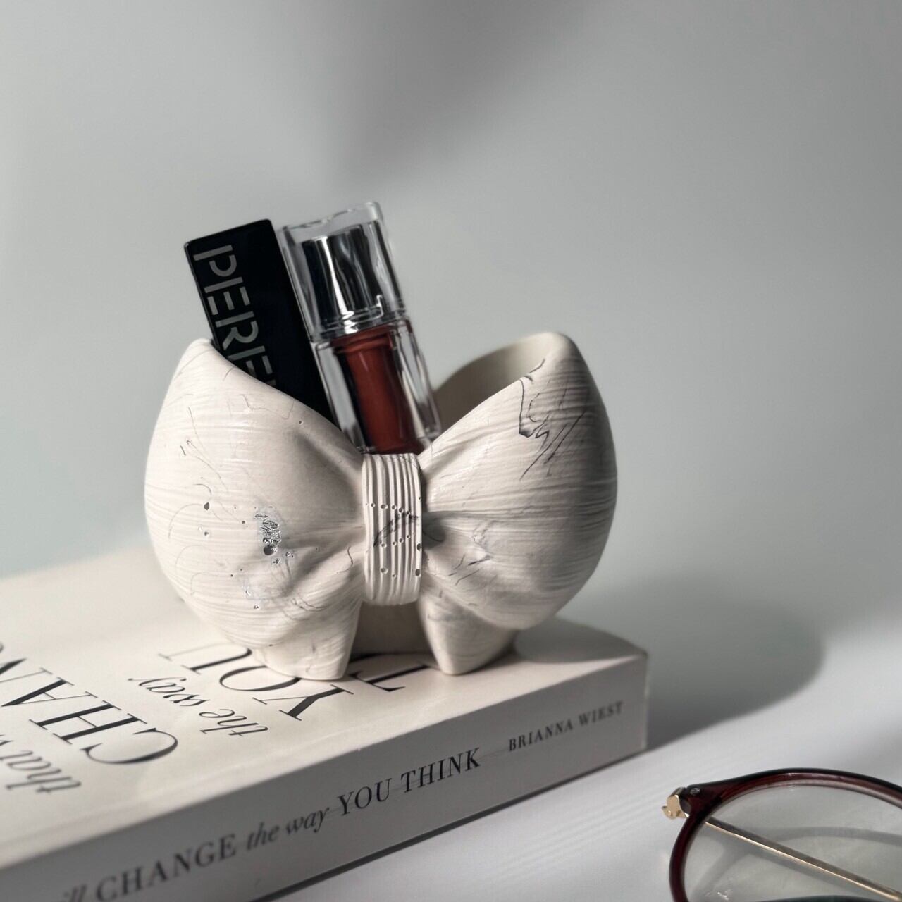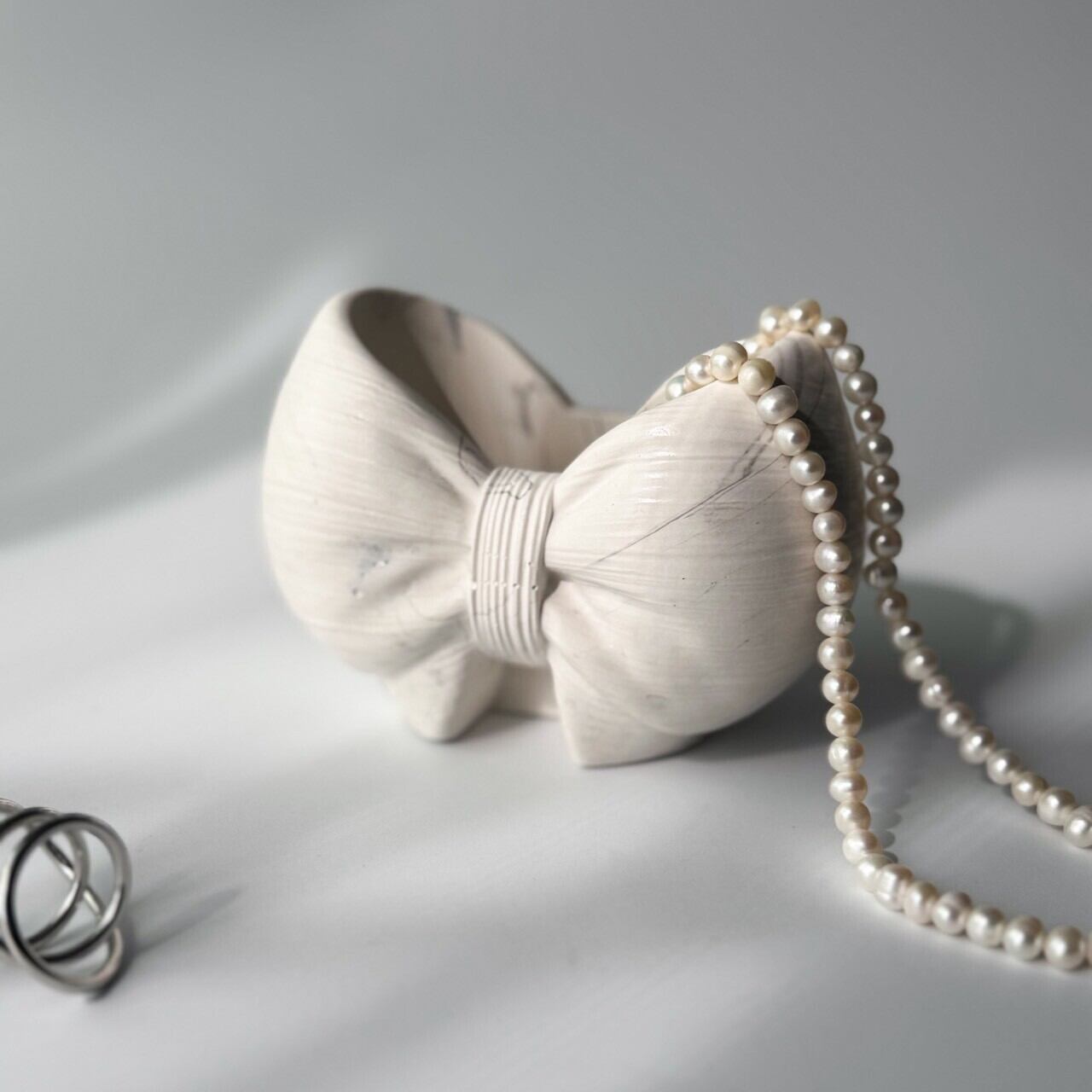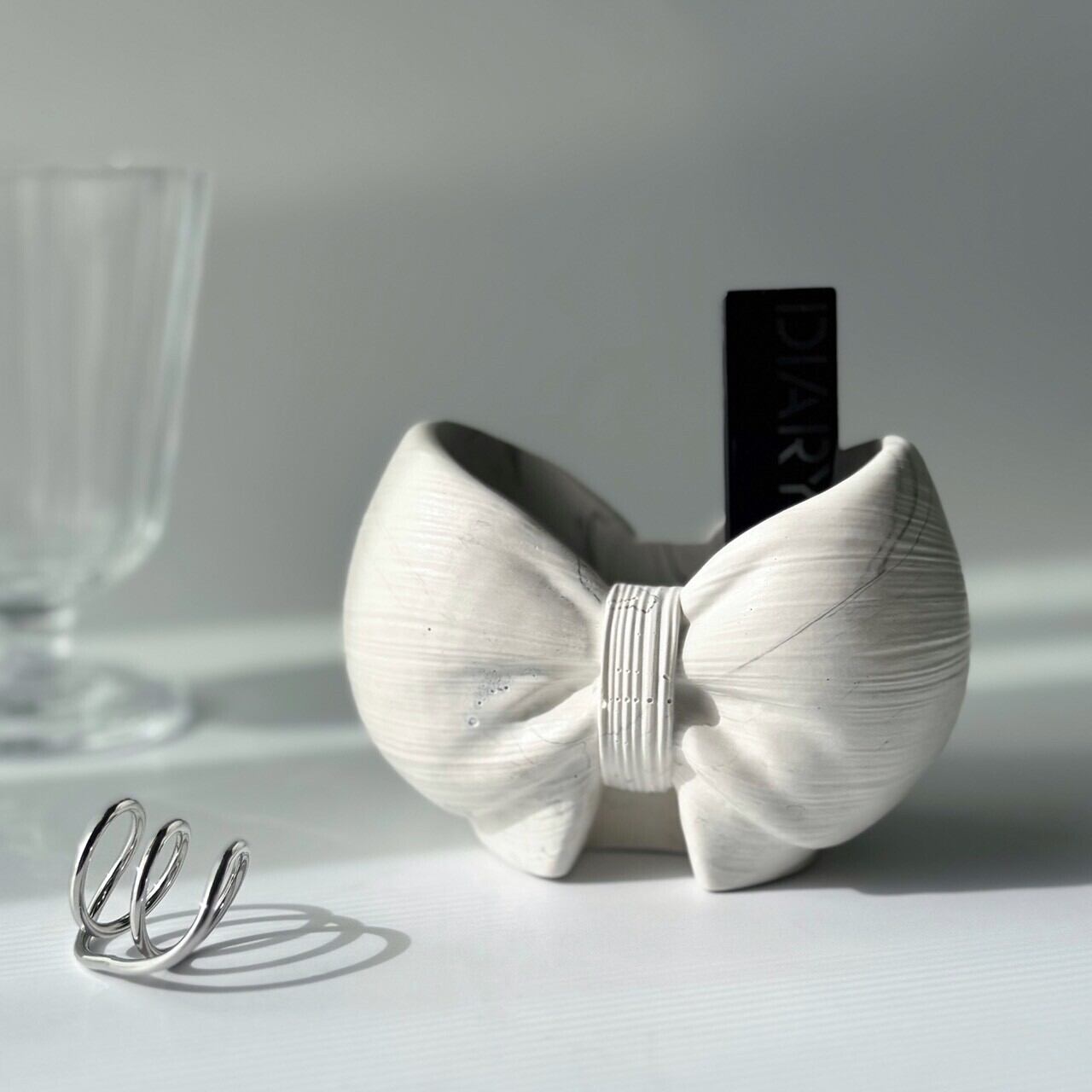 「 リボンの存在感で、”置くだけで可愛い”をつくる小物入れ 」