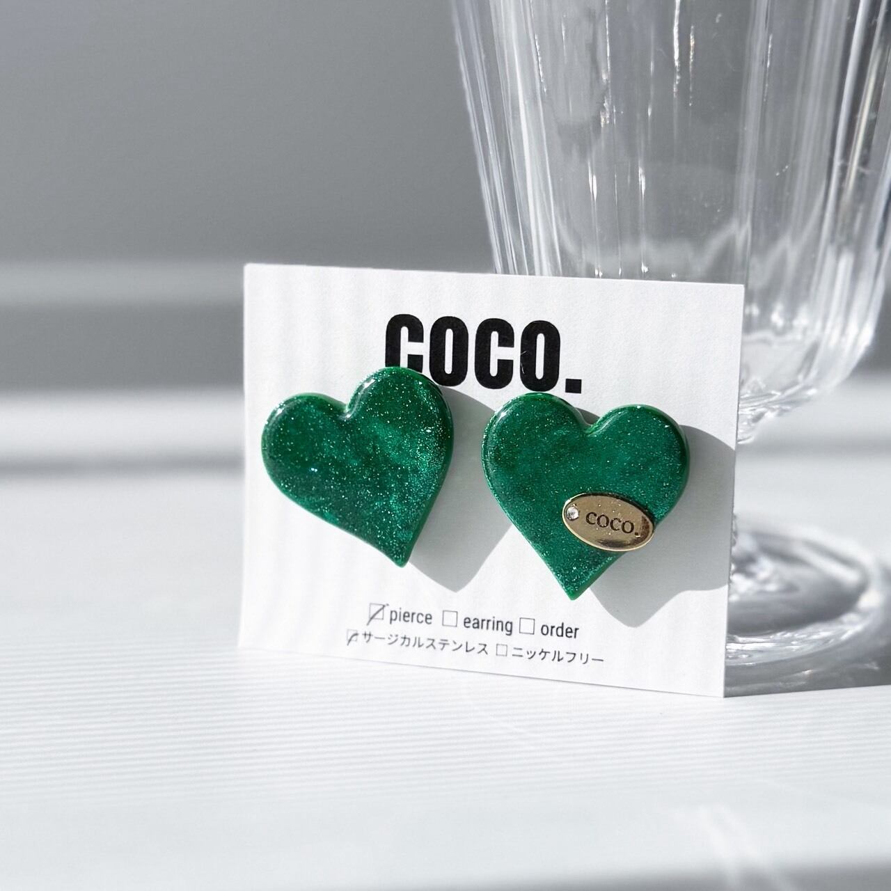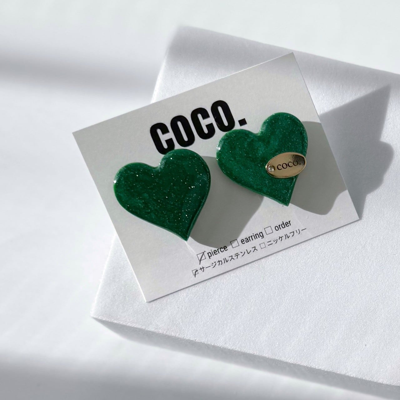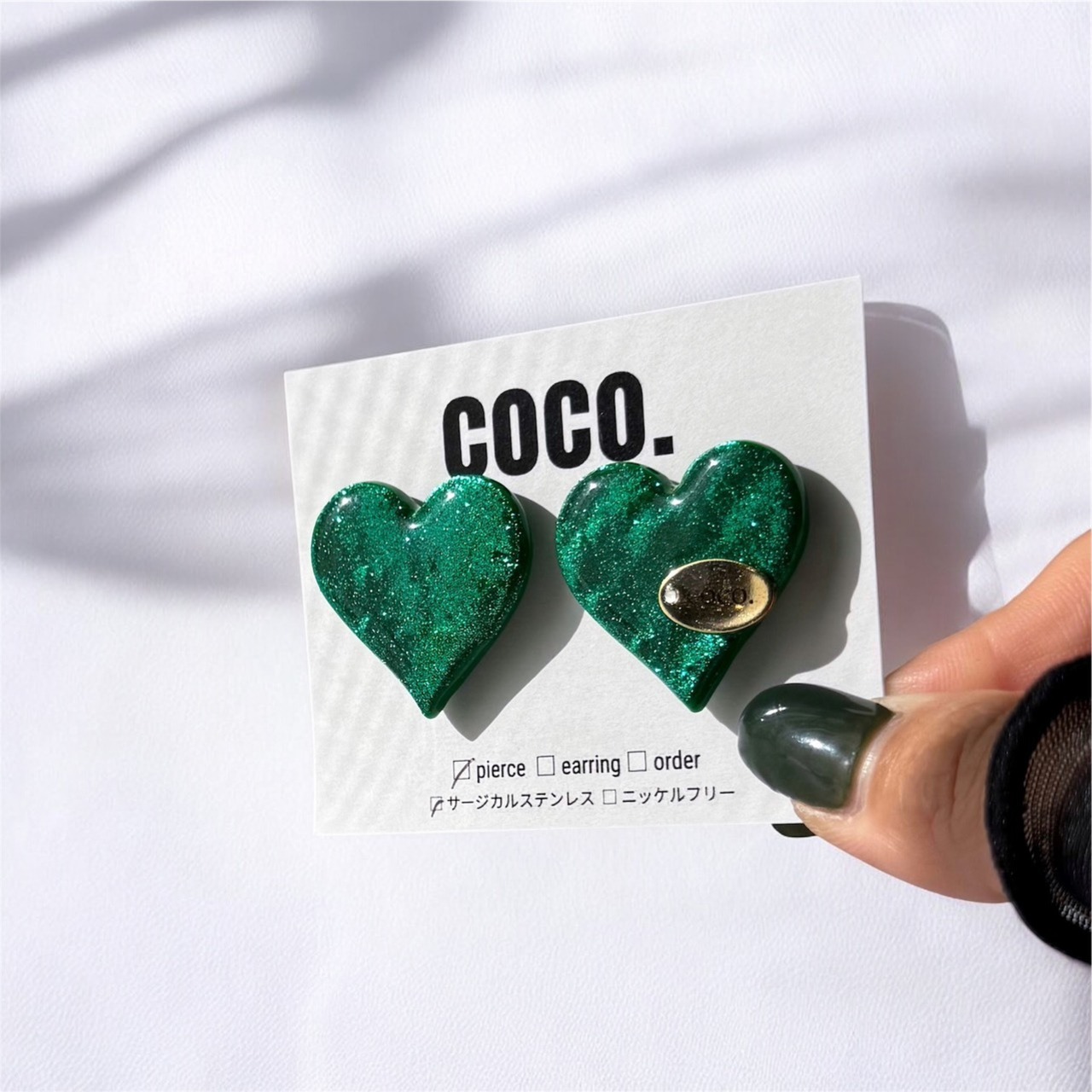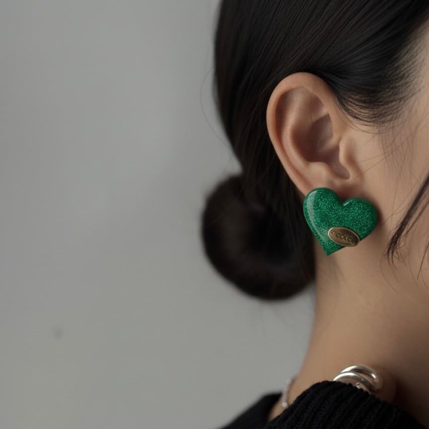 「 ラメがきらめく、ぷっくりハートの耳飾り 」