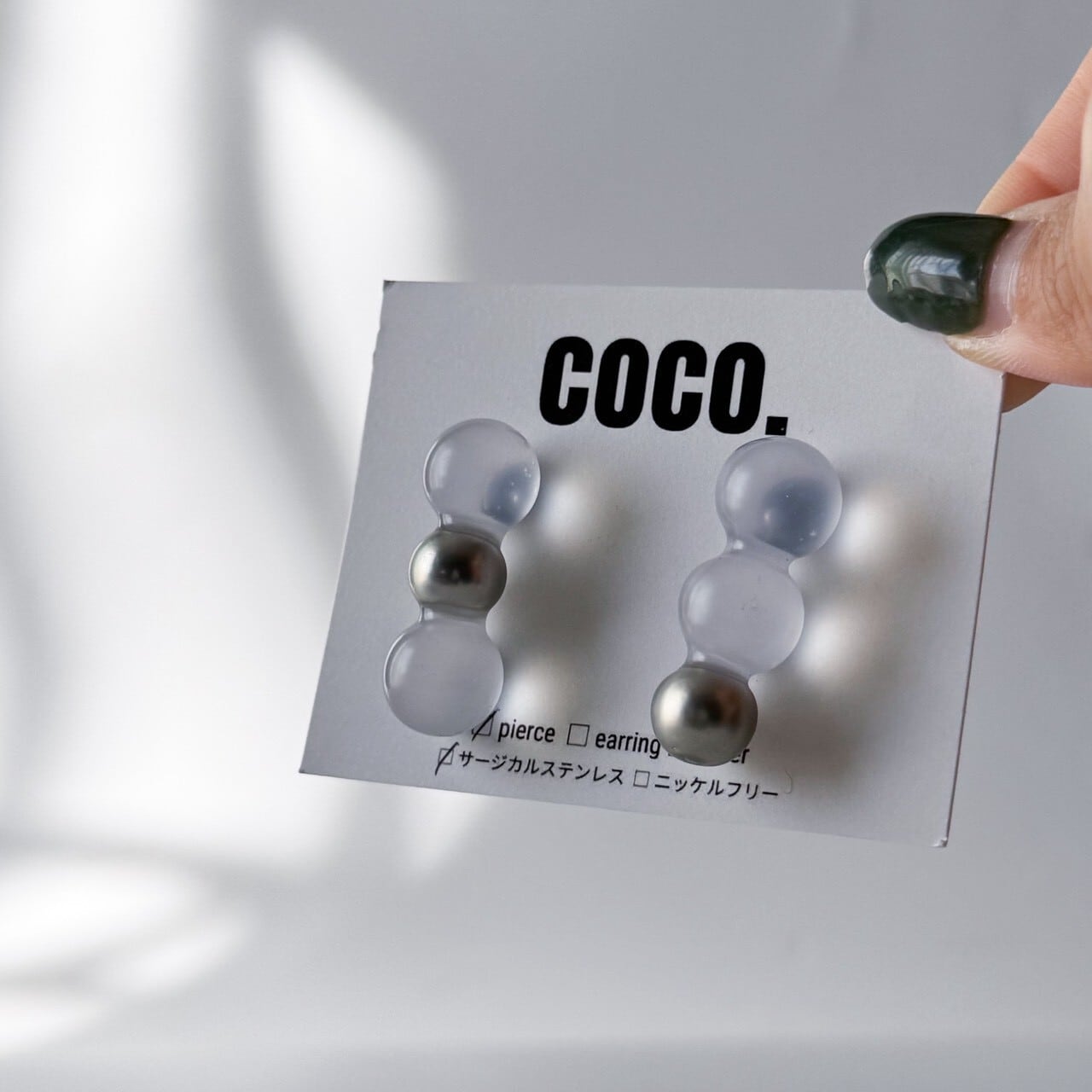 ピアス イヤリング バブル レジン 3連 モノトーン 冬 カジュアル きれいめ