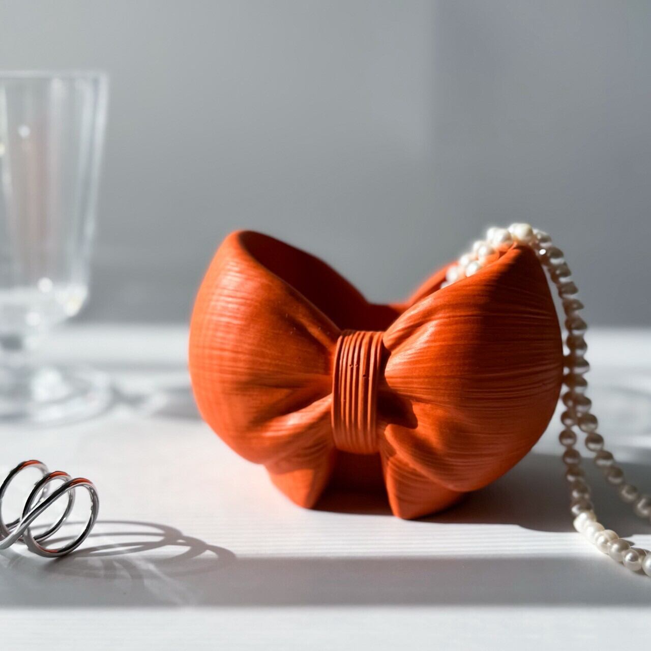 「 リボンの存在感で、”置くだけで可愛い”をつくる小物入れ 」