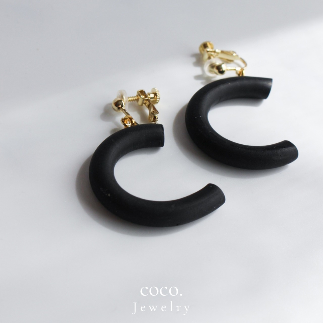 春 夏 秋 冬 ぴあす ピアス いやりんぐ イヤリング ポリマークレイ カジュアル シンプル コーデ 個性的 Cの型 大ぶり ミラー 大人 サージカルステンレス ニッケルフリー グリーン ブラック お花見 母の日 旅行 ギフト