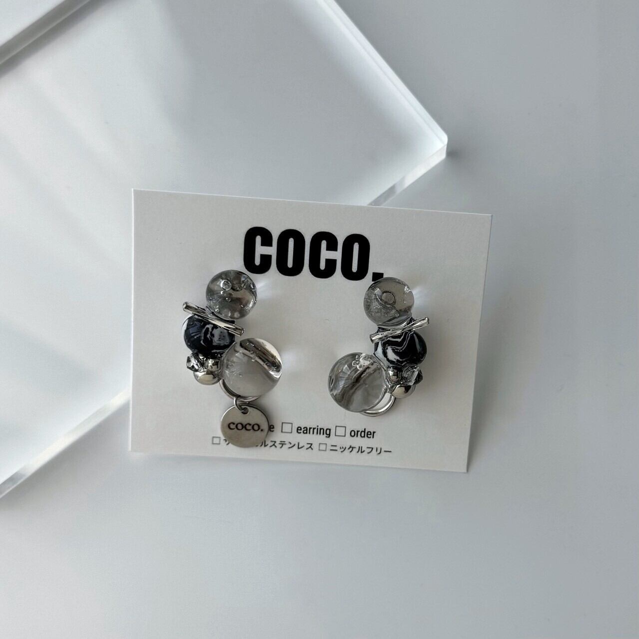 モノトーンコーデ 大人可愛い 個性的 個性的デザイン ポリマークレイ モードファッション ユニーク レジン シルバー 透明感