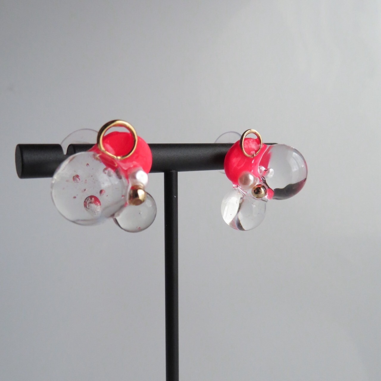 春 夏 秋 冬 ぴあす ピアス いやりんぐ イヤリング ポリマークレイ カジュアル シンプル コーデ 個性的 大ぶり 大人 サージカルステンレス ニッケルフリー グリーン ブラック お花見 母の日 旅行 ギフト バブル レジン ピンク