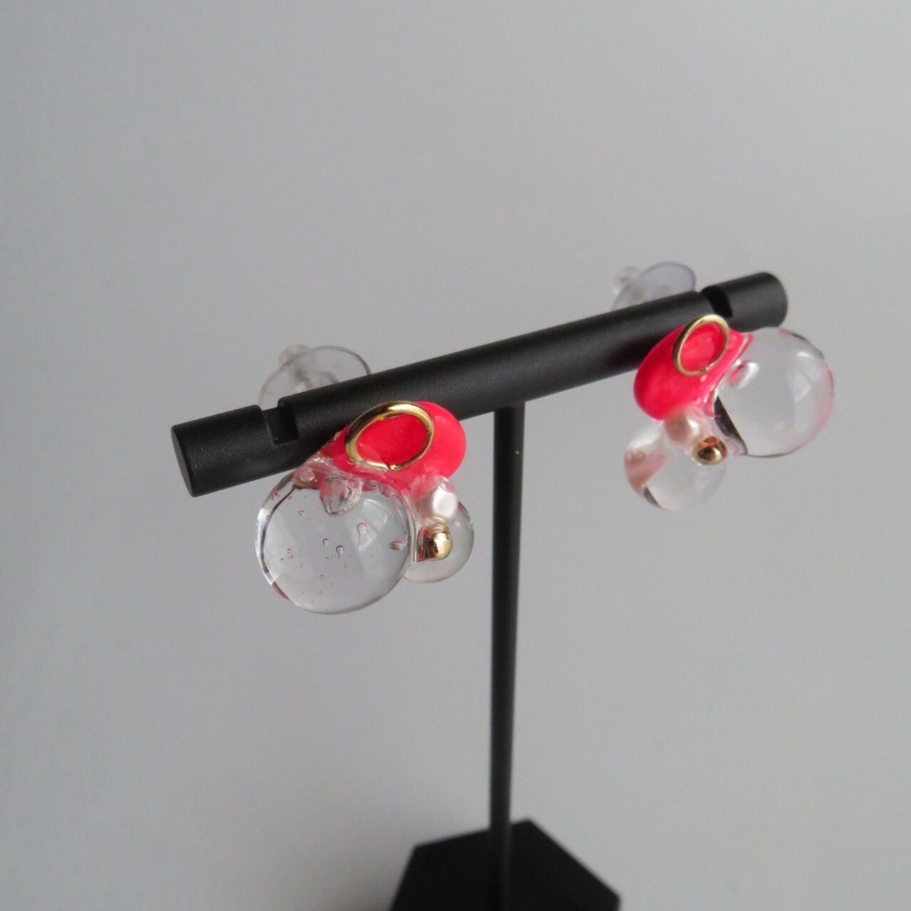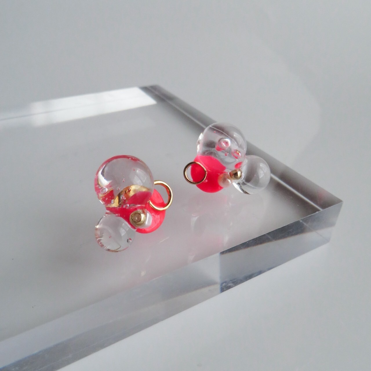 鮮やかなピンクのポリマークレイパーツと透明感のあるレジンバブルが